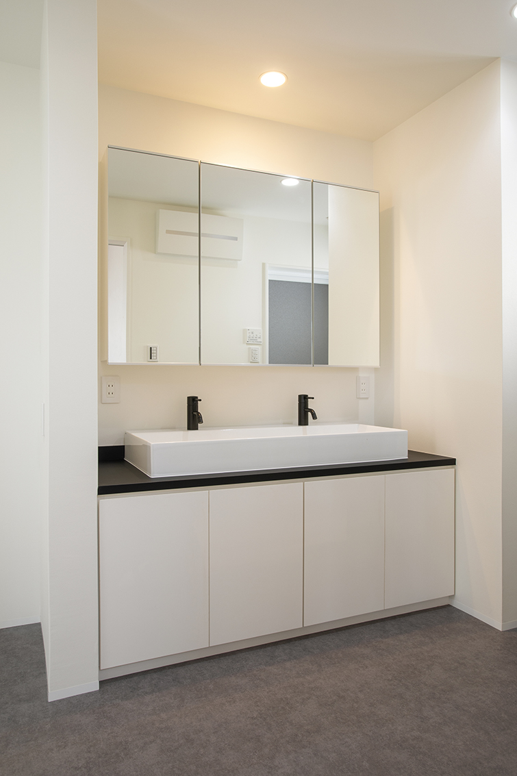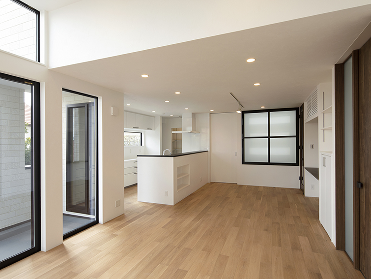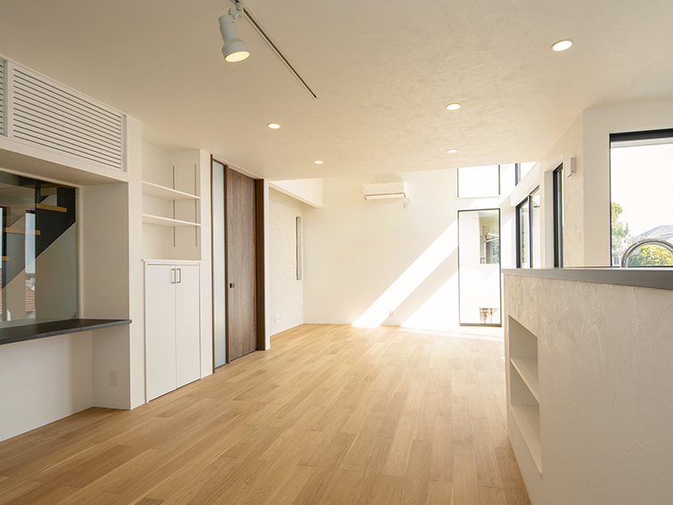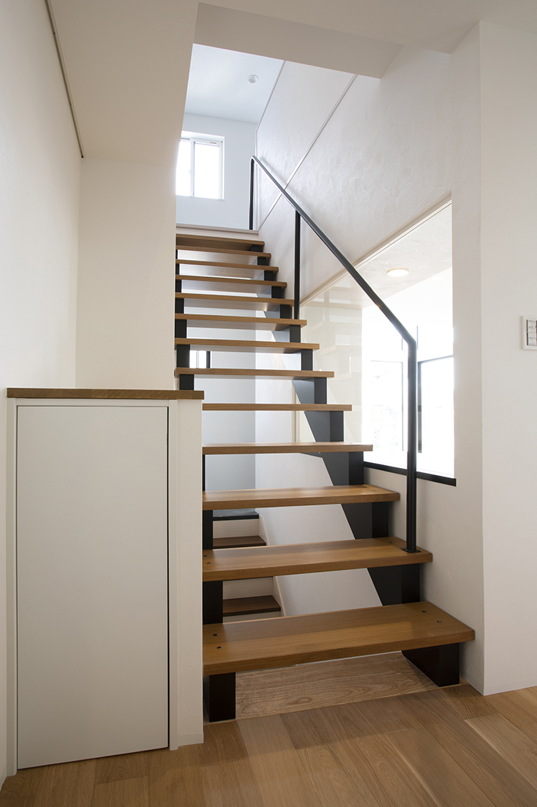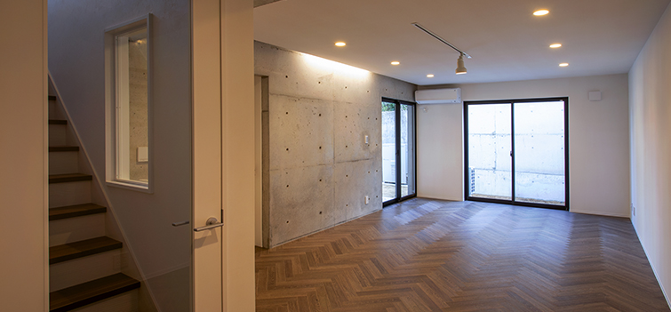 1階には来客対応フロア、3階にはプライベートフロアを配し1フロアずつの個性合わせインテリアテイストを変える提案をし、シーンによって楽しめる空間を目指した。