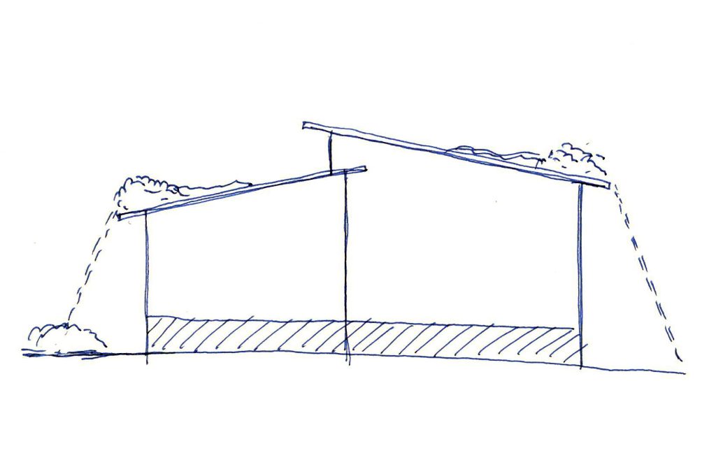 垂直積雪荷重は1.5Mあり、敷地内にどう雪を逃がすか、堆雪するかが課題であった。